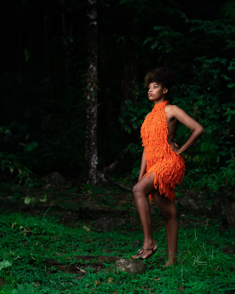 Je suis titulaire de deux diplômes, le DNA, diplôme national d’art, et le DNSEP, diplôme national supérieur d’expression plastique, que j’ai eu au campus caribéen des arts, seule école d’art caribéenne. Les thématiques que j’aborde sont, dans un premier temps, l’éco-conception, la récupération, l’écologie “récupérée pour créer”. Dans un deuxième temps, tout ce qui va être intime, donc féminité, le corps, les traumas, les syndromes.