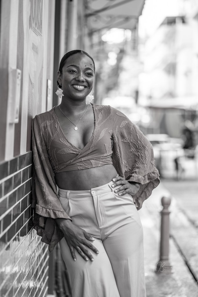 Originaire de la Guadeloupe, elle est venue en 2018 habiter en Martinique pour avoir des diplômes au campus caribéen des arts.